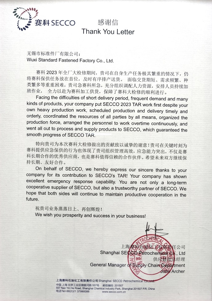 近日,我司收到客戶的感謝信一封,信中表達了對我司服務的肯定與認可,也是對我司全體員工的鼓勵和鞭策。我們始終堅持“以顧客為關注焦點”、“滿足并超越顧客的要求為已任”、“不斷創(chuàng)新,持續(xù)改進”,為顧客提供優(yōu)質(zhì)的產(chǎn)品與服務。