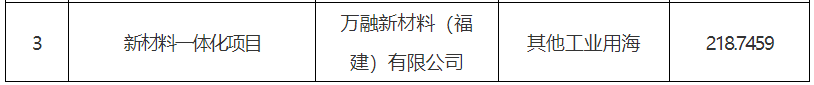 2024年1月,福清萬融新材料一體化項(xiàng)目用海獲國務(wù)院批復(fù),用海總面積218.7459公頃。從公布的信息中得知,該項(xiàng)目所屬企業(yè)為“萬融新材料(福建)有限公司”。